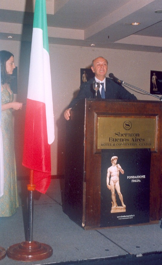 L'On. Rocco Curcio presidente dell'Associazione dei Lucani nel Mondo, saluta i convenuti al Premio Italia nel Mondo