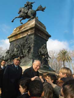 Il Presidente Ciampi nella foto con un gruppo di studenti, ha reso omaggio al Monumento di Anita Garibaldi
